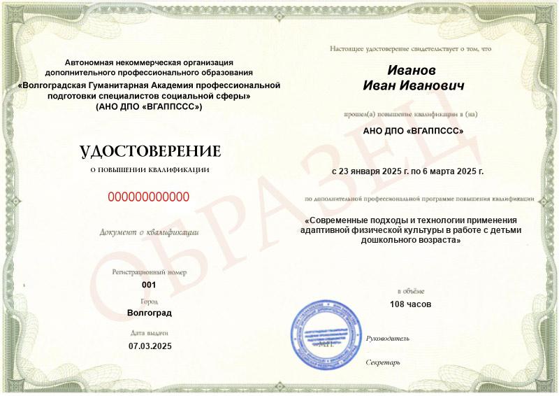 Заполненные образцы документов можно найти в описании конкретных образовательных программ на сайте АНО ДПО «ВГАППССС», а также на странице «Лицензия. Документы».