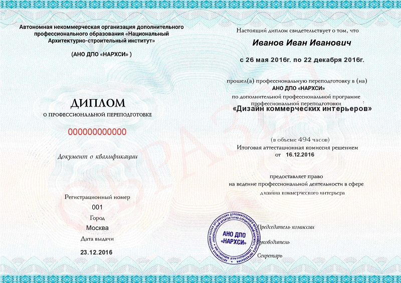 Обучение по такой программе – способ освоить новую профессию на основе ранее полученного образования. В дипломе выпускника указывается его ФИО, наименование учебной организации, название и длительность программы. Документ заверяется подписью руководителя и печатью АНО ДПО «ВГАППССС».
