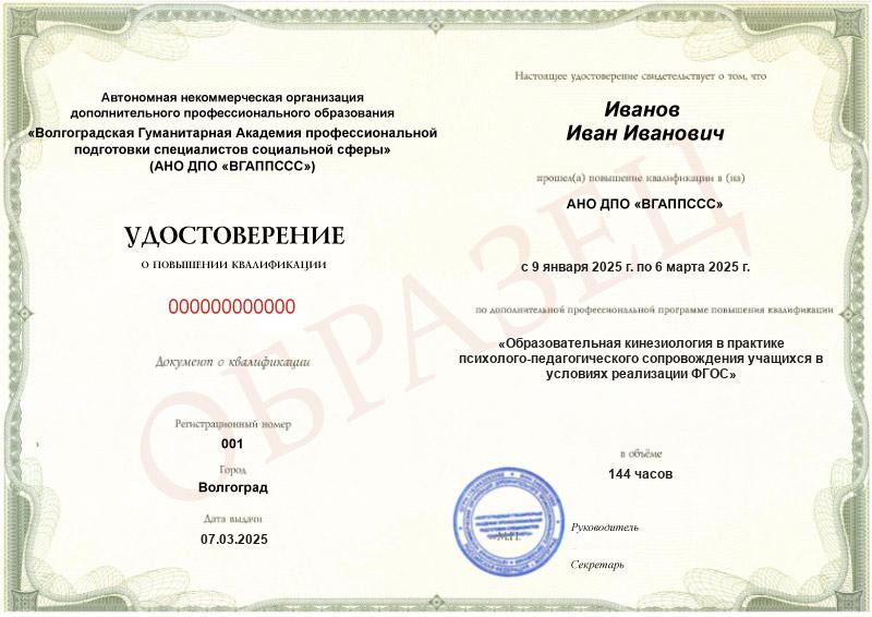 Да, АНО ДПО «ВГАППССС» выдаёт документы о квалификации установленного организацией образца, возможность выдачи образовательной организацией документов установленного образца регламентирована приказом Минобрнауки РФ №499.