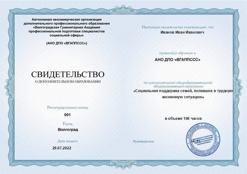 Заполненные образцы документов можно найти в описании конкретных образовательных программ на сайте АНО ДПО «ВГАППССС», а также на странице «Лицензия. Документы».