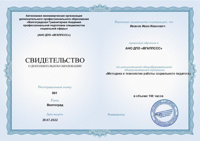 Да, АНО ДПО «ВГАППССС» выдаёт документы о квалификации установленного организацией образца, возможность выдачи образовательной организацией документов установленного образца регламентирована приказом Минобрнауки РФ №499.
